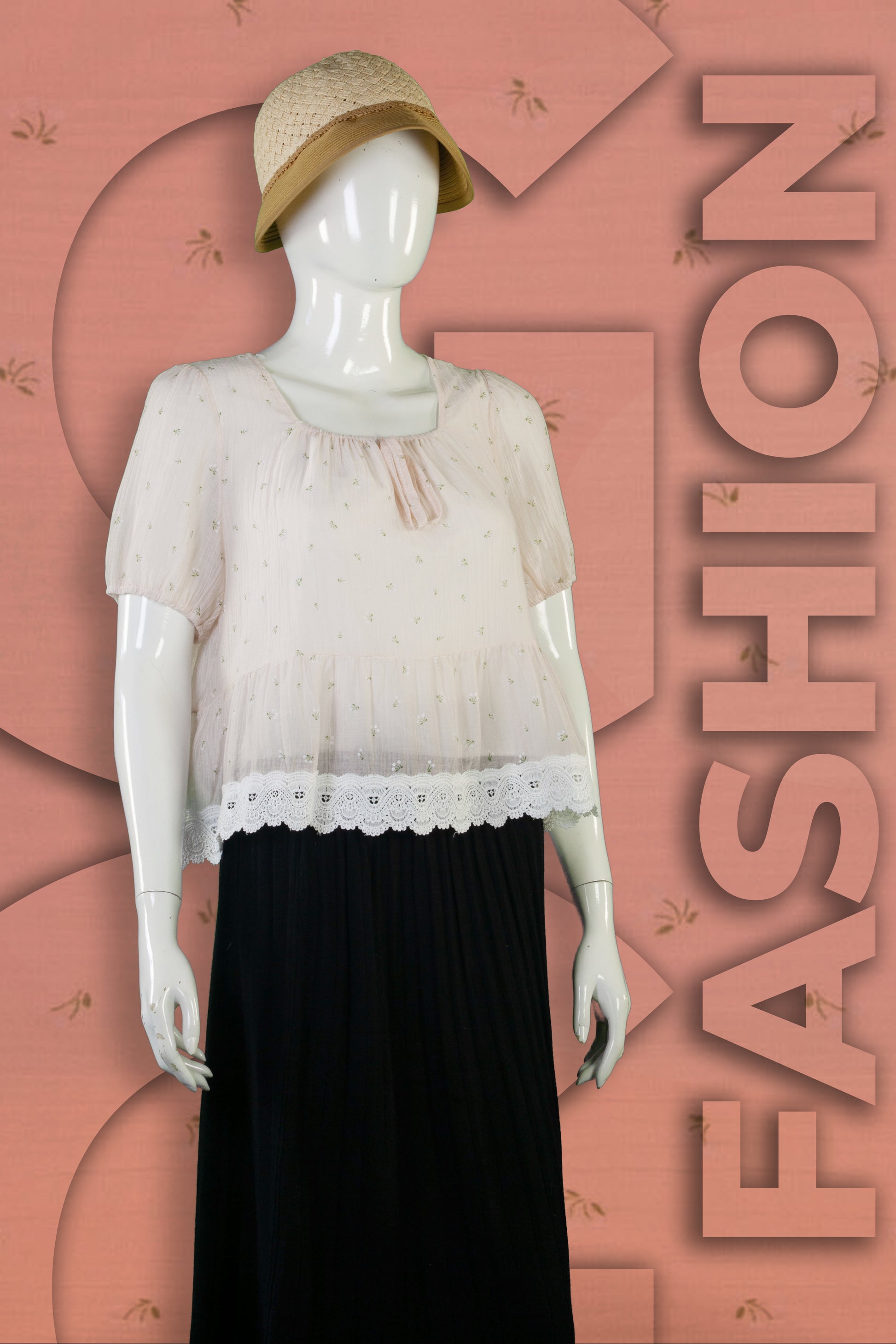 Blouse Motif Bunga Kecil Renda Bawah