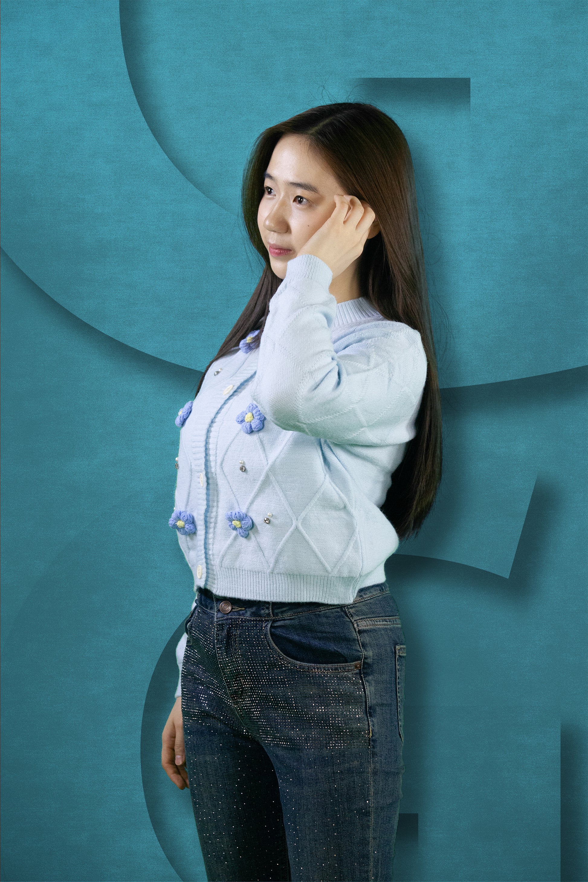 Cardigan Rajut Motif Bunga dan Garis