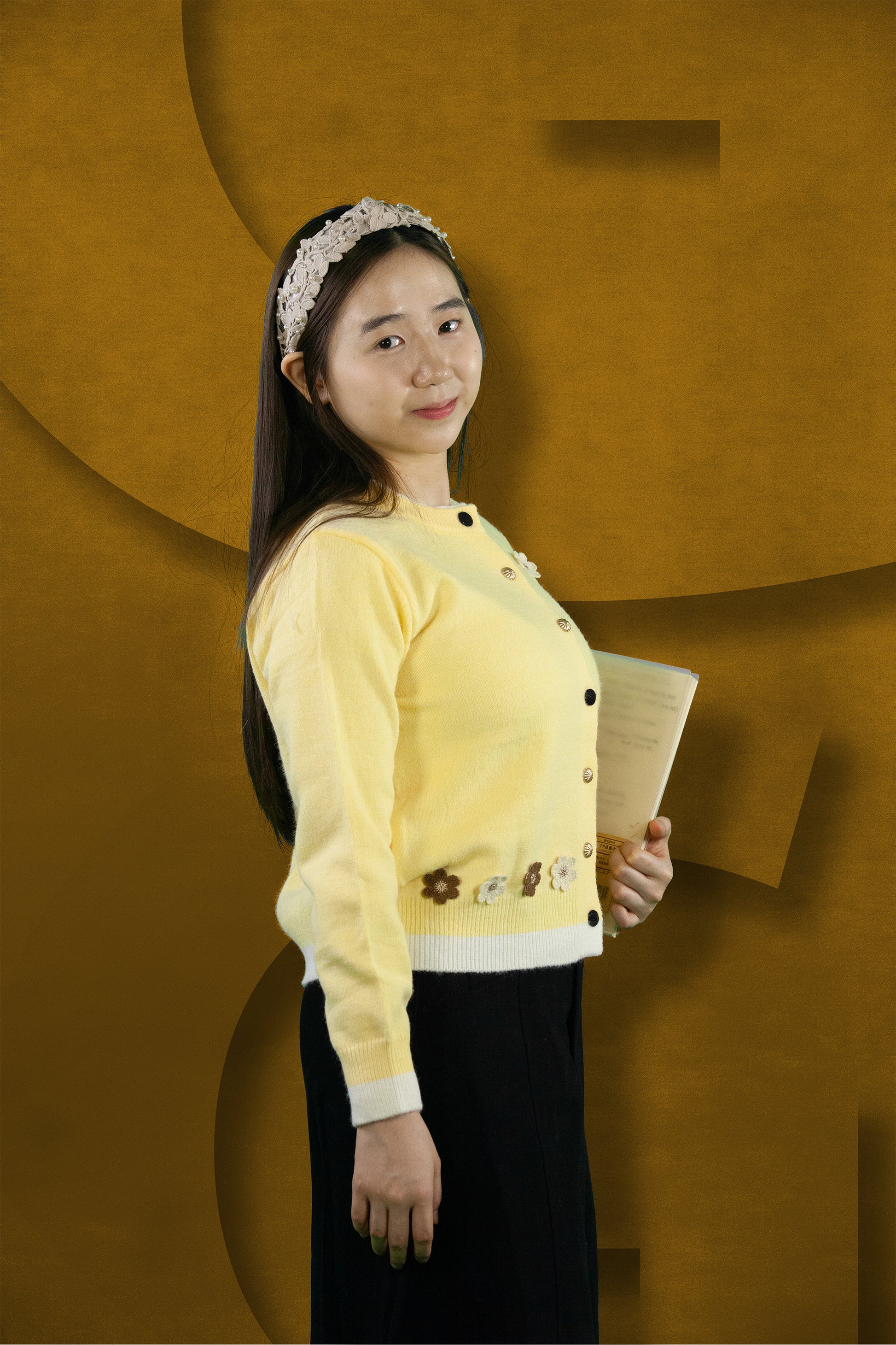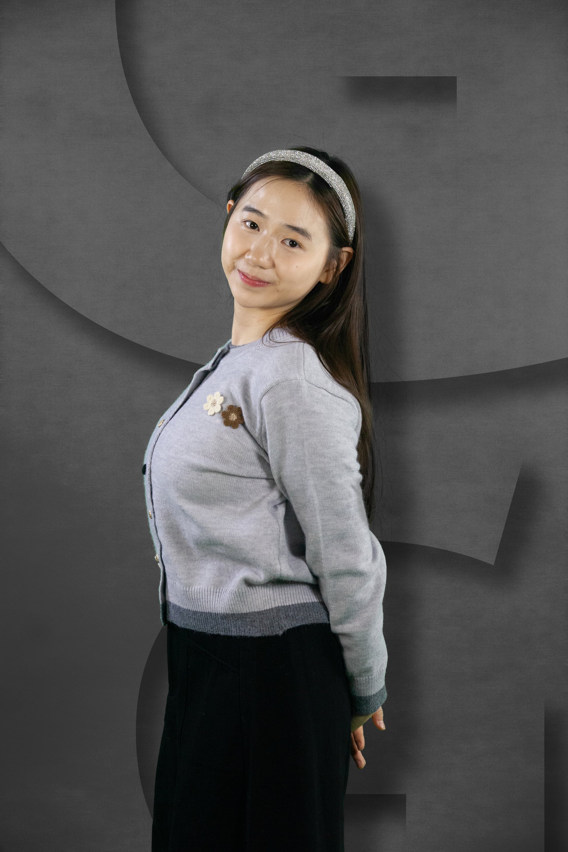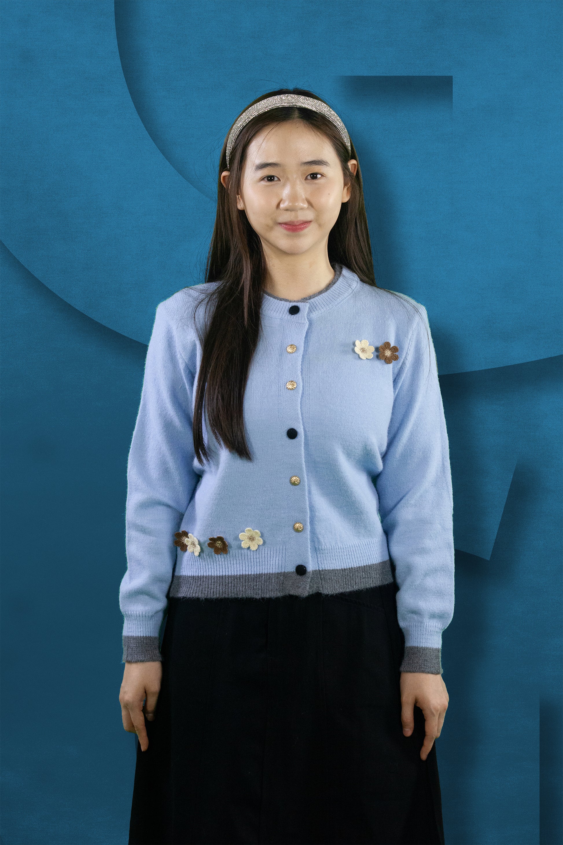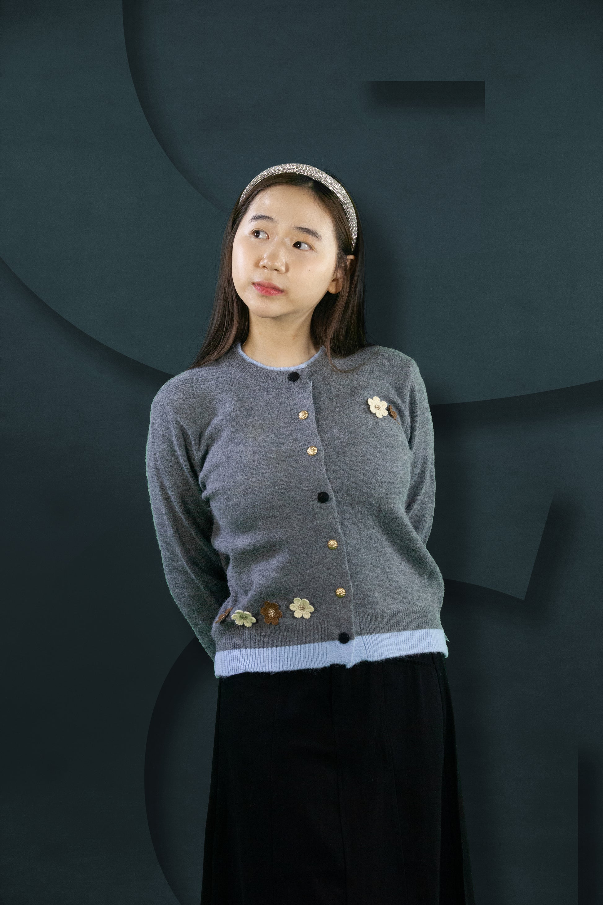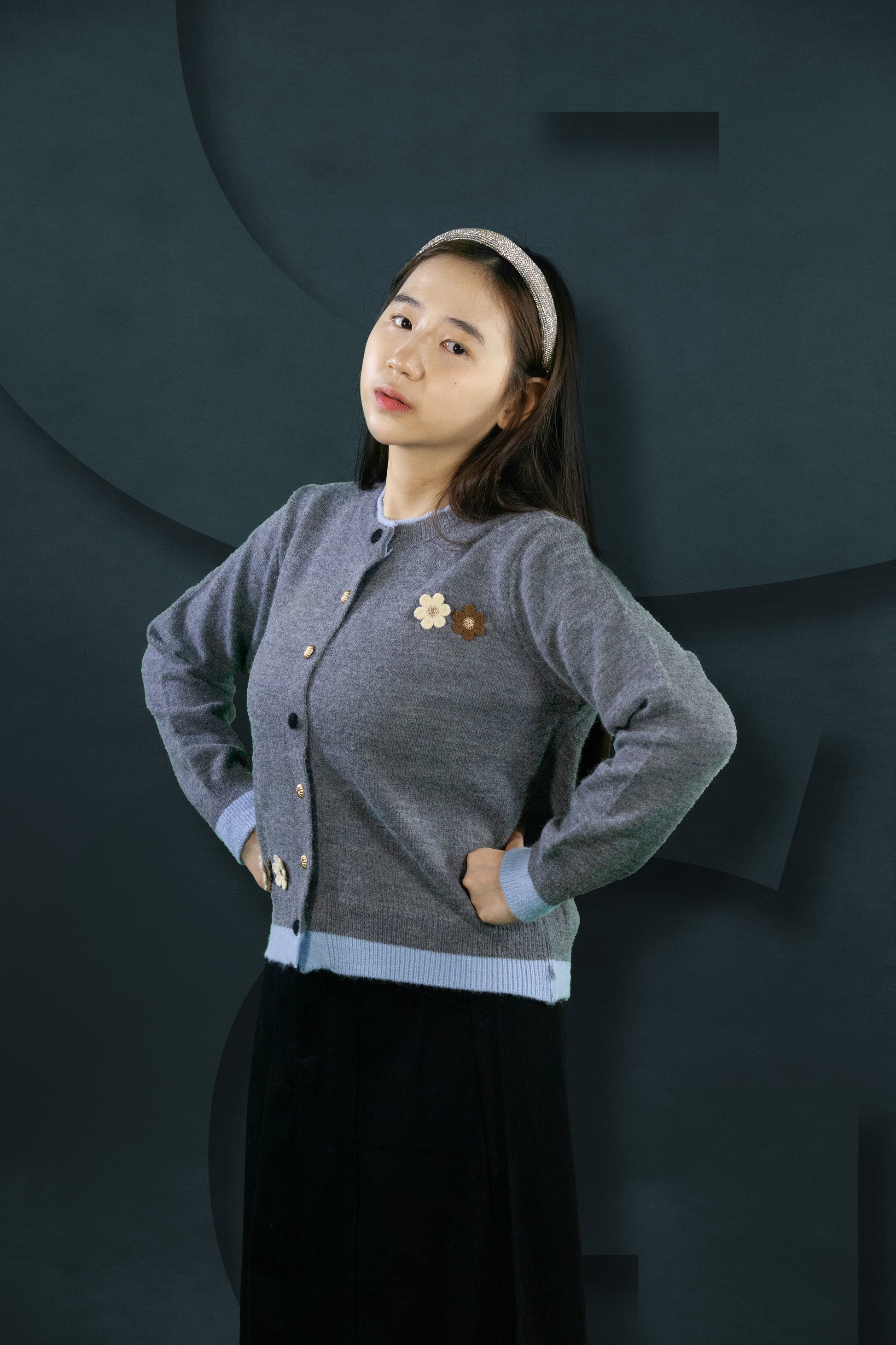Cardigan Rajut Two Tone Motif Bunga