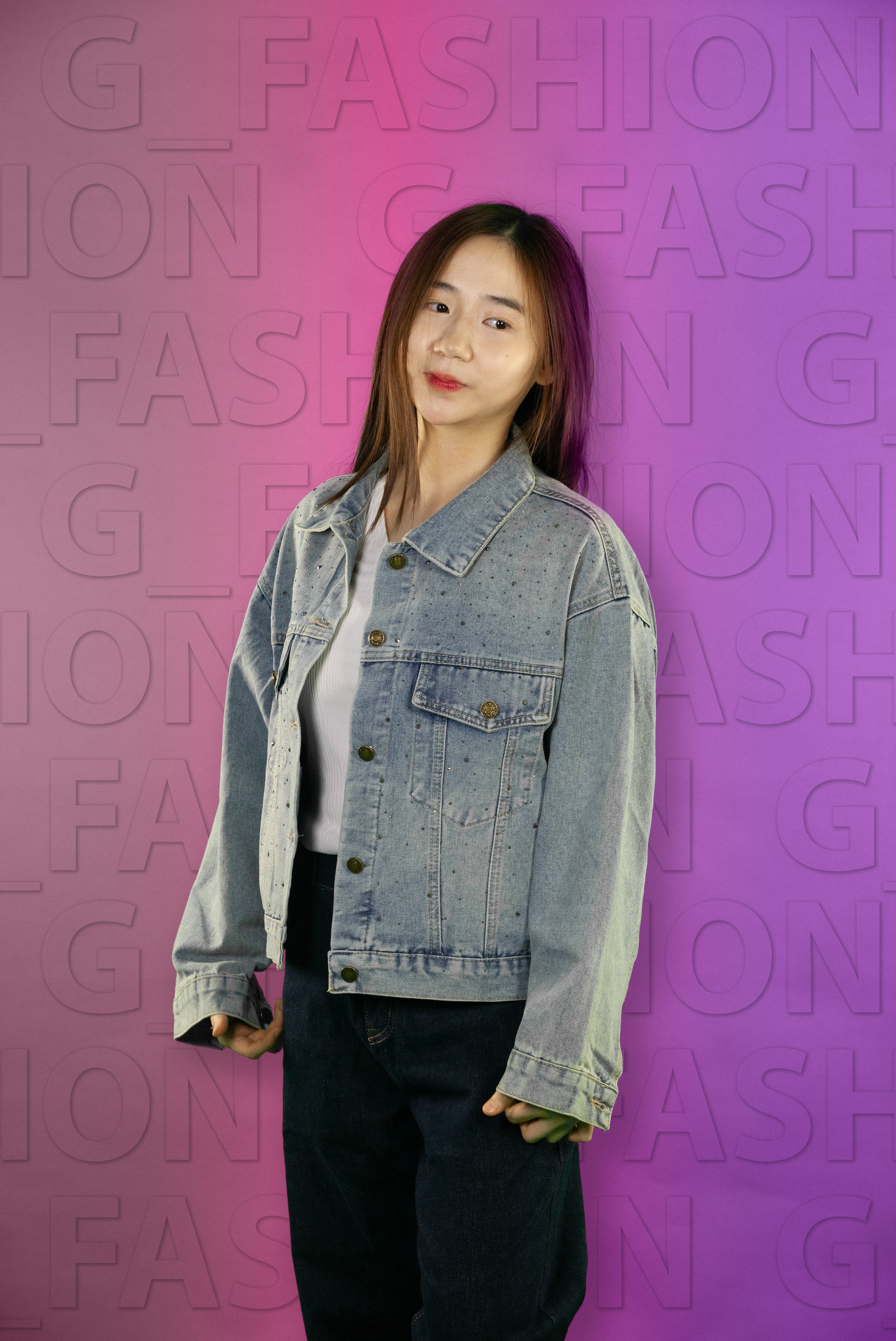 Jaket Jeans Bling Bintik Hitam