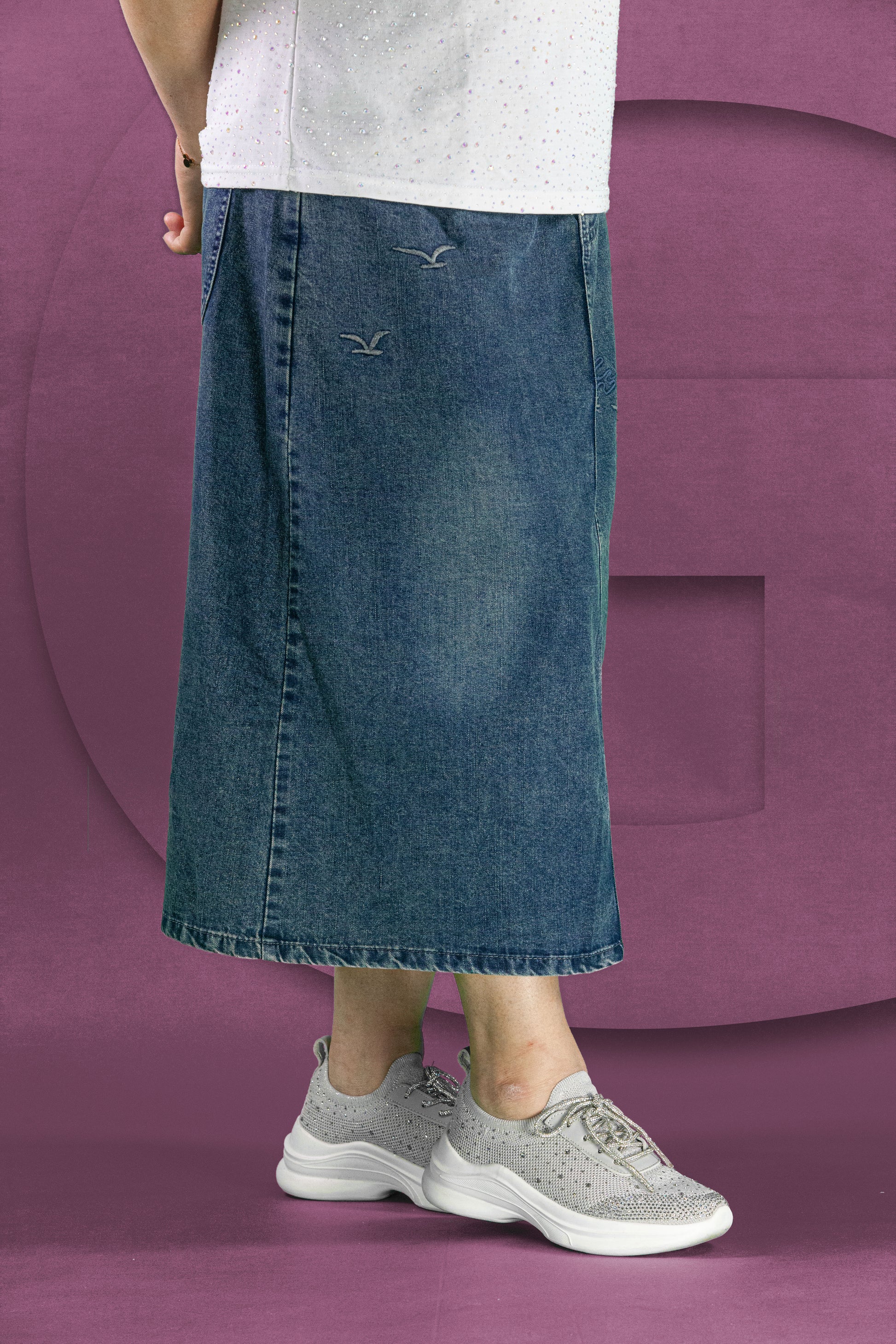 Rok Soft Jeans Motif Bunga Plum